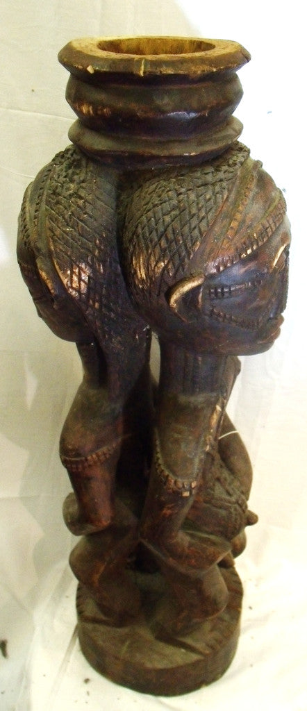 Old luba twin statue from Congo.The kanyok people eastern side of the luba depict erotic couples holding cup for the divination purpose they also represent forest spirit or ancestors.