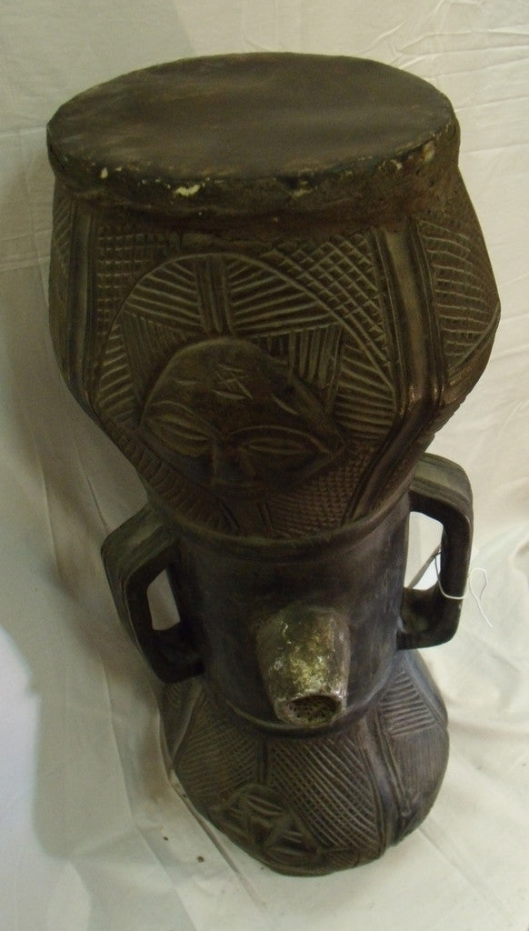 This is an old Chokwe drum from Congo Angola.The Chokwe are governed by a king called Mwana Ngana the chokwe produced stool,tobacco boxes scepters,combs,drums and unusual piece.